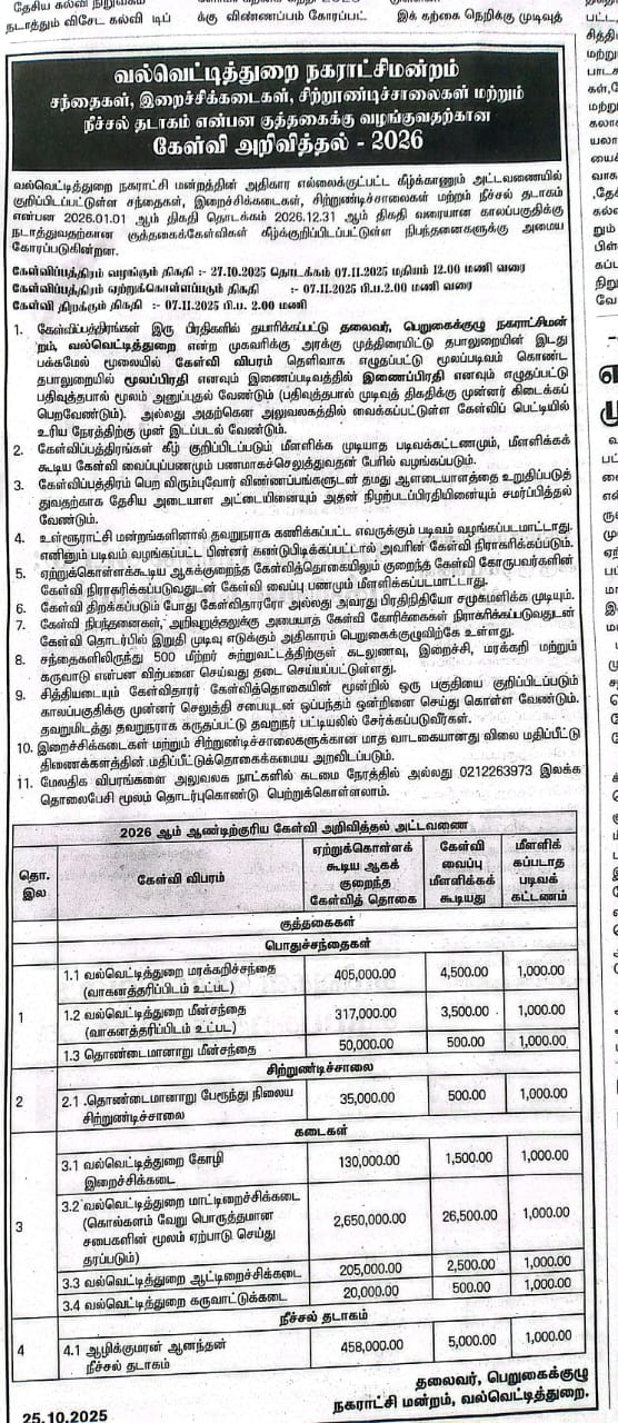 சந்தைகள், நீச்சல்தடாகம், இறைச்சிக்கடைகள் குத்தகை Purchasing Computers Printers Purchasing Necessary things For Public Library